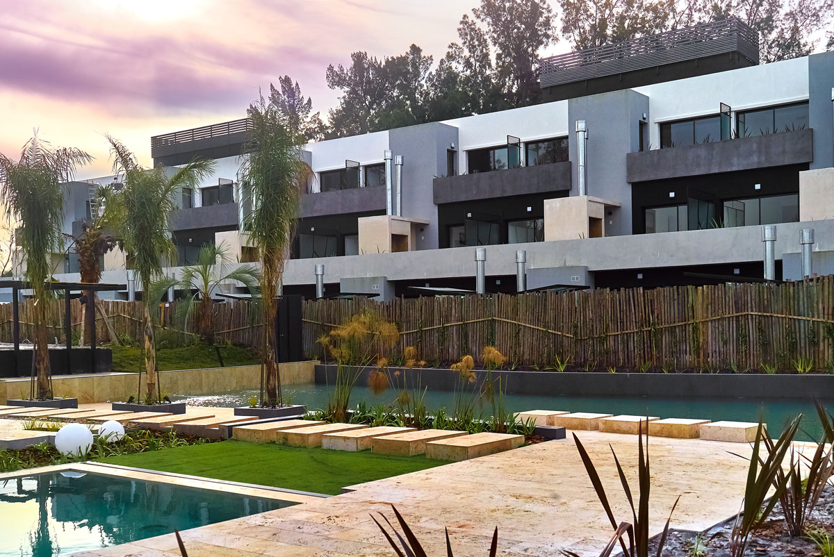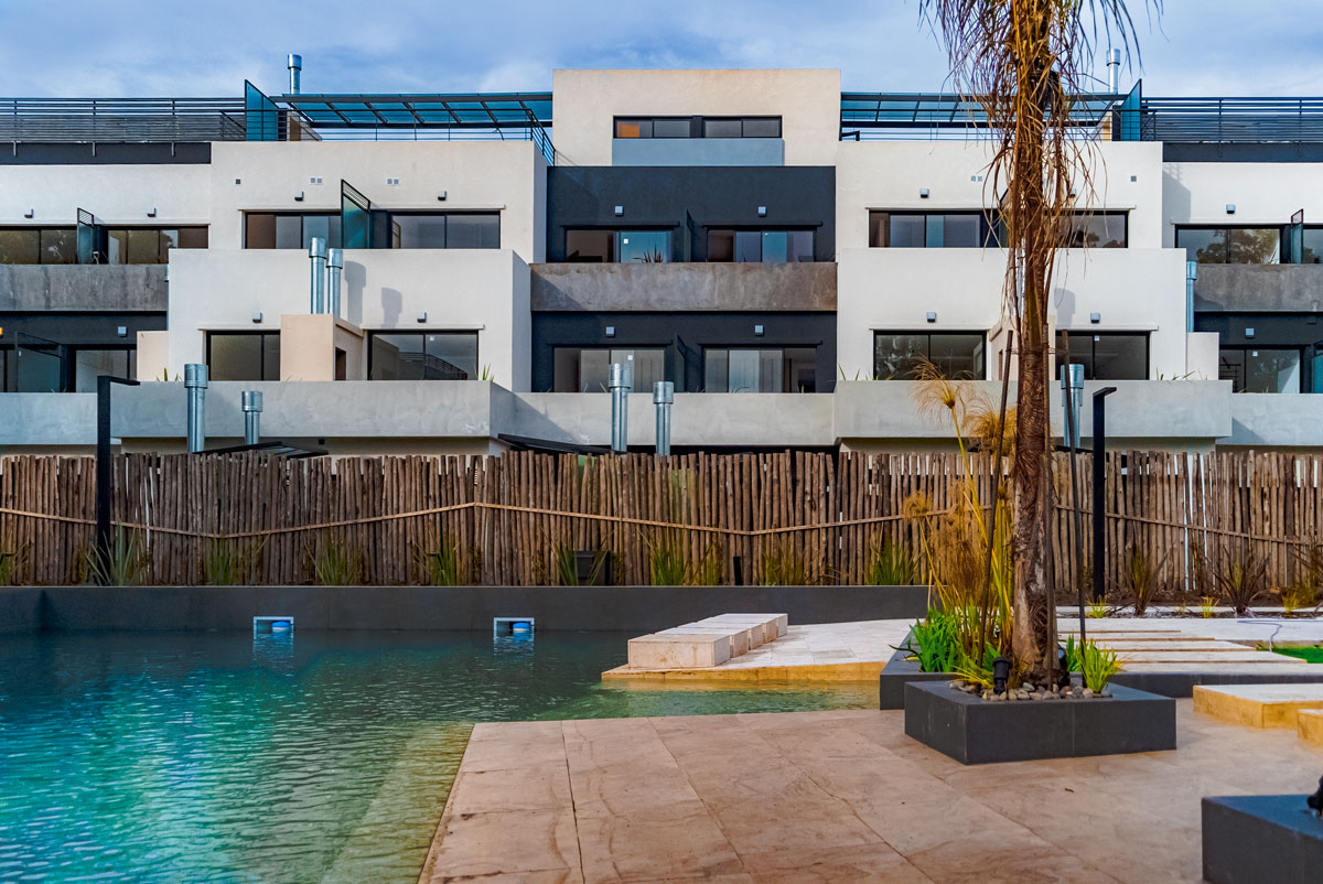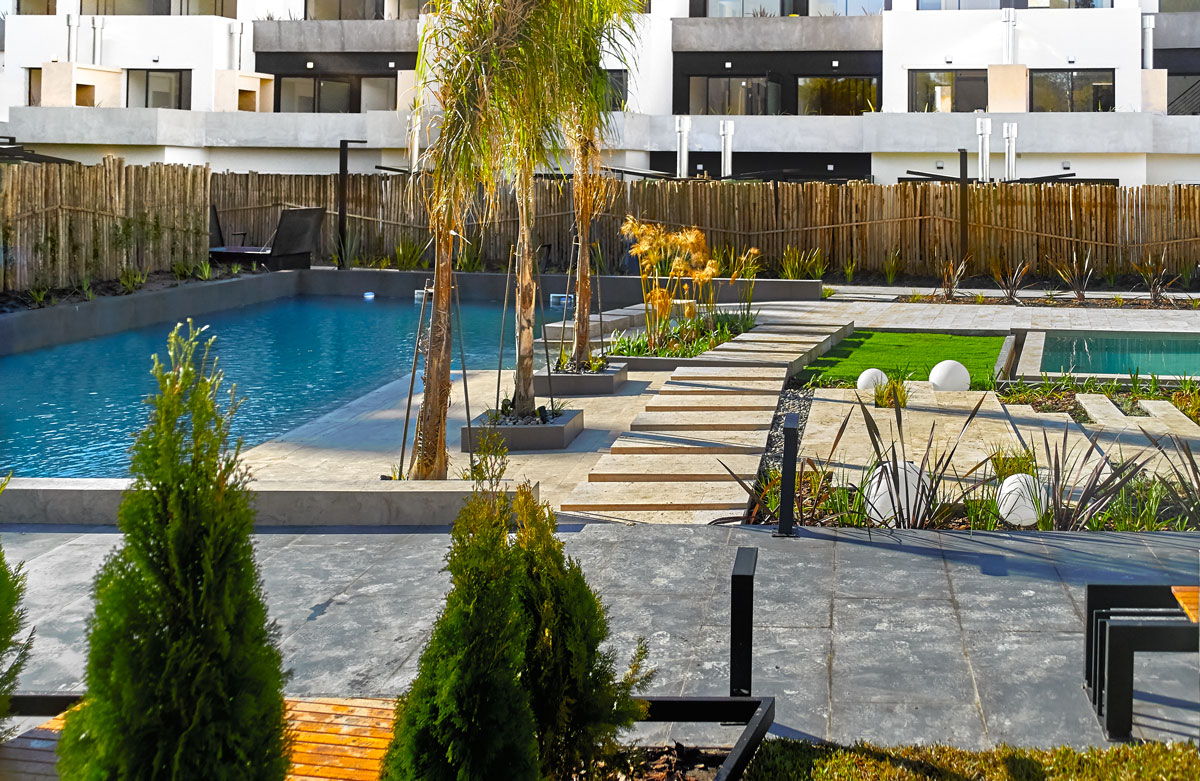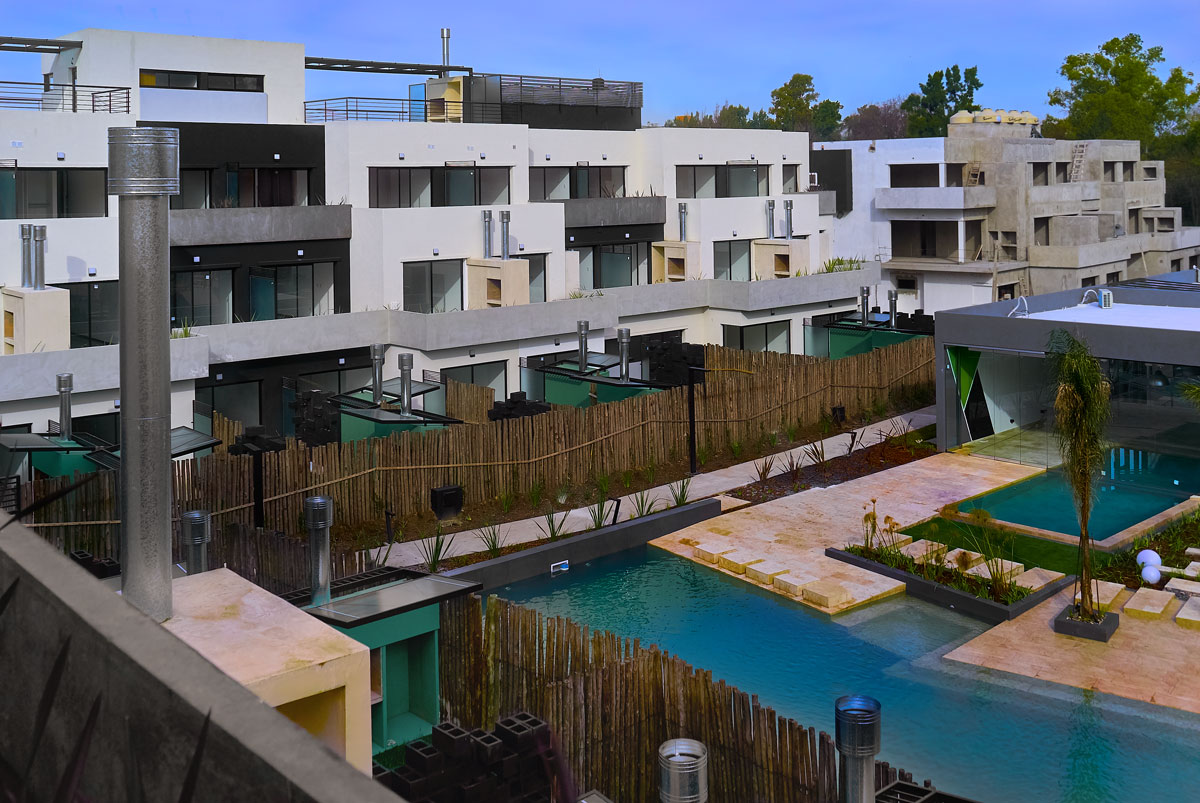 4 bloques de departamentos más casas individuales con piscina, jardín y cochera privada. 94 unidades desde 31 m2 hasta 140 m2. 1, 2, 3 y 4 ambientes en planta o en dúplex. Todos los departamentos con parrilla y cochera (opcional cocheras subterráneas). Unidades de Planta Baja con jardín propio. Casas de 4 ambientes con jardín, piscina y cochera privada.