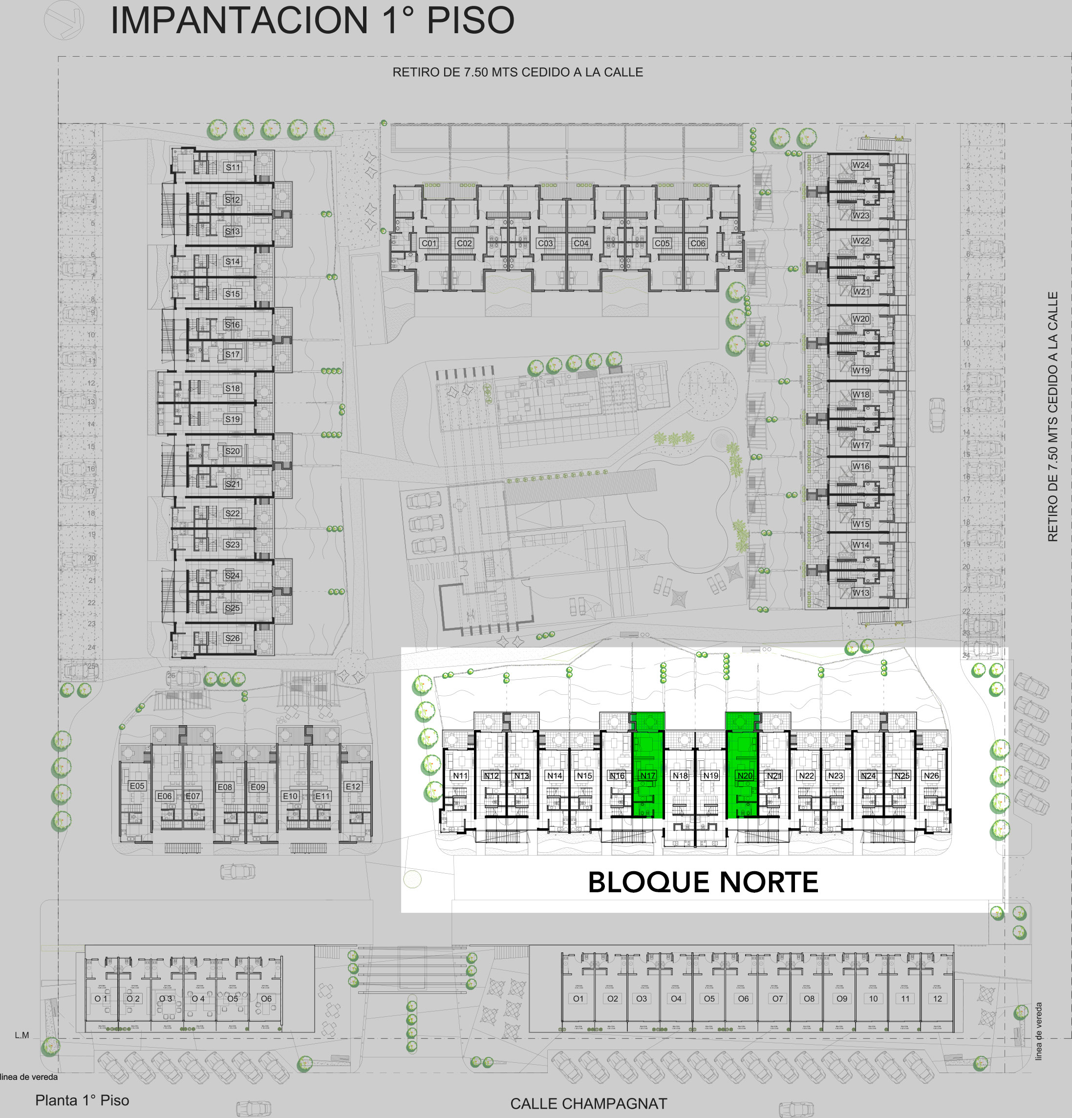 La 1era etapa de venta son los bloques Norte y Oeste ( todas las medidas de las unidades son aproximadas y pueden llegar a tener una minima variación).