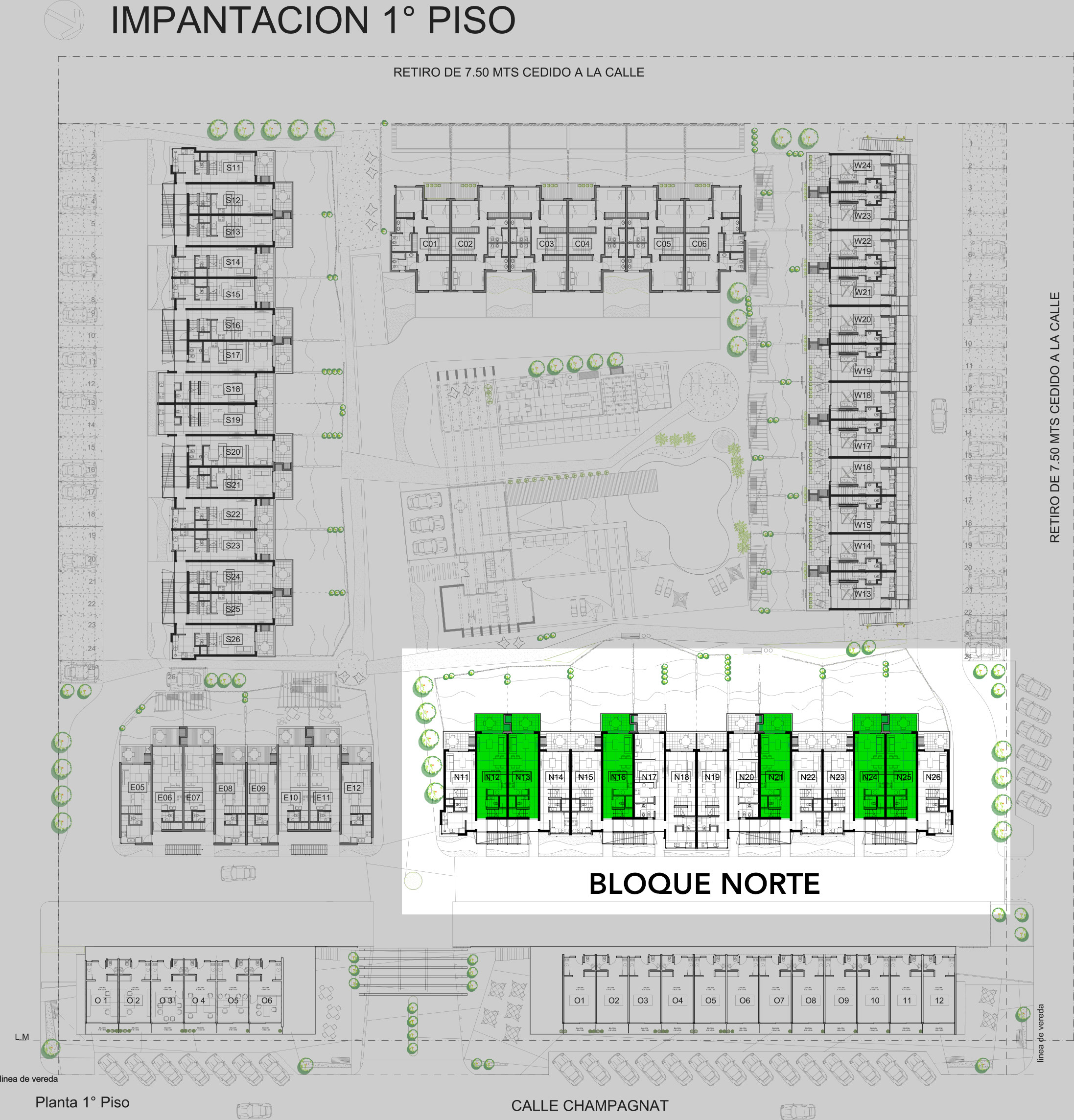La 1era etapa de venta son los bloques Norte y Oeste ( todas las medidas de las unidades son aproximadas y pueden llegar a tener una minima variación).